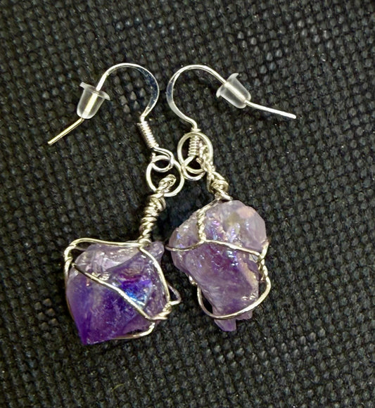 Aura Quartz Sterling Silver Earrings Jewelry Gift Purple