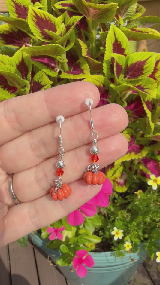 3D Pumpkin Earrings with Faceted Accent Beads in Silver