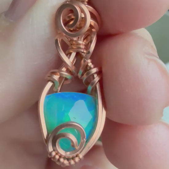 Ethiopian Opal Mini Pendant in Copper Necklace Jewelry