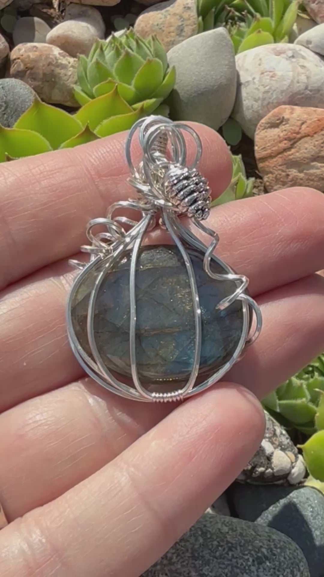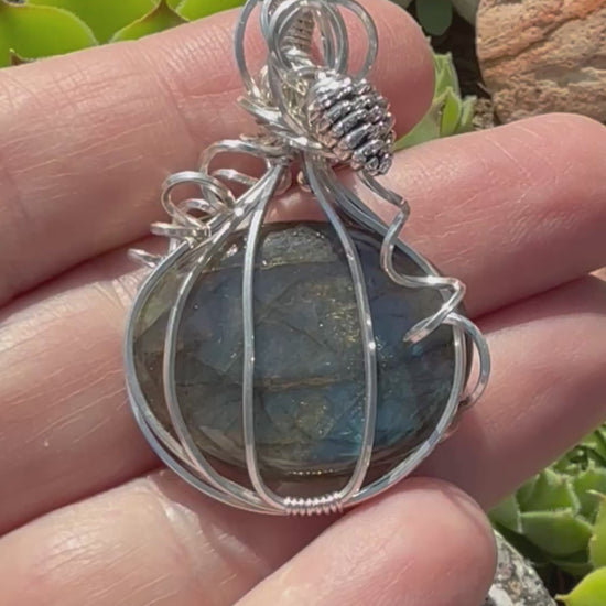 Labradorite Pumpkin with Pine Cone in Sterling Silver Necklace Pendant
