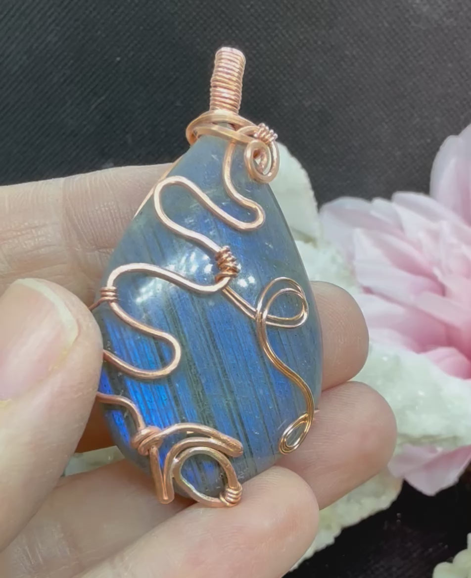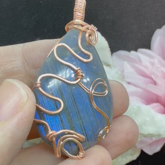 Labradorite Teardrop in Copper with Serpent Overlay Blue Flash Pendant Jewelry Necklace Gift